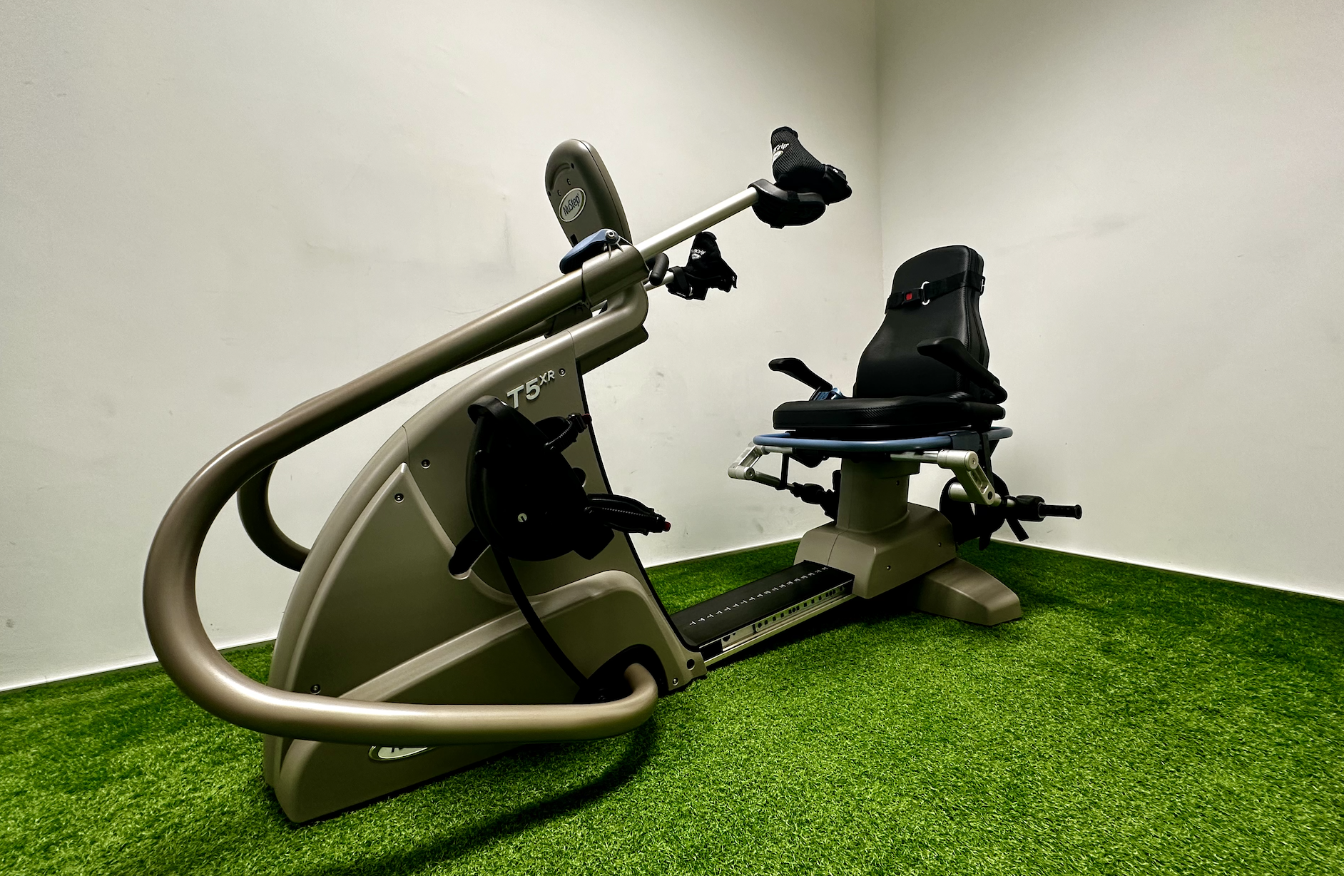 Como no podía ser de otra manera, contamos con máquinas de entrenamiento y sistemas deportivos de marcas líder en el mercado como Technogym, Precor o Concept con los que trabajar componentes como la fuerza o el nivel cardiorrespiratorio, aspectos claves para la mejora funcional en neurorrehabilitación.